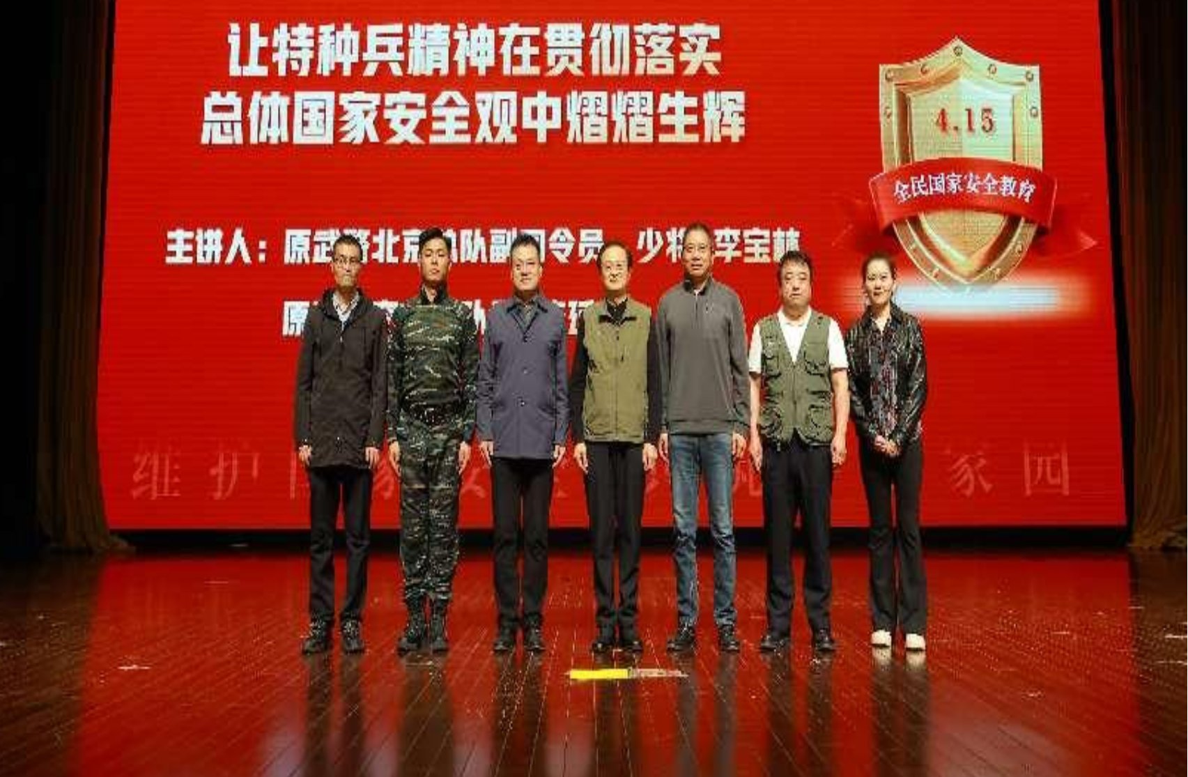 为深入学习贯彻总体国家安全观,我校组织开展了一场极具深远意义与震撼力的 “总体国家安全观在你身边-特种兵进校园” 主题教育活动,为千余名师生呈上了一场令人热血澎湃且富含深刻思想内涵的 “国家安全公开课”。活动特邀武警雪豹突击队创始人、第29届北京奥运会安保工作主要指挥员李宝林少将和原雪豹突击队特战队员陈延峰作专题报告,校党委常委、副院长高世吉与千余名师生共聚一堂,共筑国家安全意识防线。