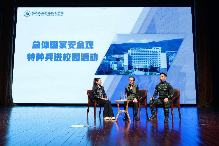 活动在热烈的掌声中拉开帷幕,李宝林少将以 “让特种兵精神在贯彻落实总体国家安全观中熠熠生辉” 为主题展开访谈分享,结合自身丰富的军旅生涯,深入剖析了特种兵精神的内涵与价值,并对总体国家安全观进行了深入浅出的解读。他着重强调,师生安全是校园和谐稳定的前提,是国家教育事业蓬勃发展的重要保障。在校园这片知识的殿堂中,每一位师生的安全都关乎着家庭的幸福、学校的声誉以及国家未来人才的培养。而特种兵精神,蕴含着忠诚无畏、坚韧不拔、英勇善战、团结协作等特质,与总体国家安全观高度契合。当代青年身处和平年代,更应将这种精神融入日常学习与生活,以坚定信念筑牢思想防线,热爱祖国,努力学好专业本领,提升综合素养,不惧未来可能面临的各种挑战;坚守顽强意志,在挫折中砥砺前行,实现青春的升华,方能成为国家长治久安与繁荣发展的有力推动者。