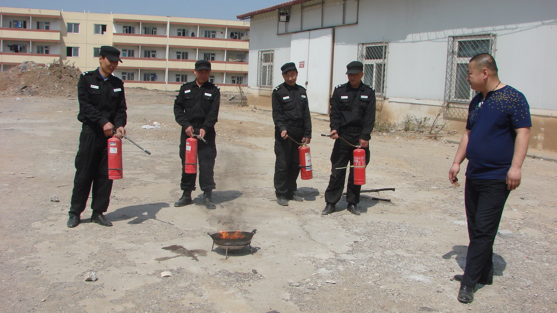为不断提高校卫队安全工作能力,锻炼校卫队员消防安全业务素质,加强校卫队员的安全防范与防火救灾的实战技能,防范于未然;结合我院“平安校园”建设,针对“预防为主,防消结合”的消防工作方针,我院校卫队于4月14日在学院文化广场进行消火栓及灭火器灭火实操演练和遇到紧急情况的反应速度。