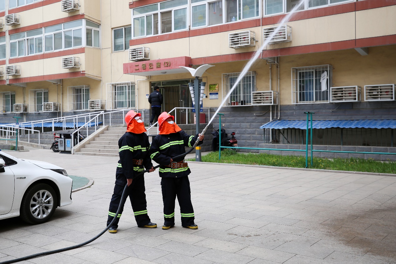 开幕式组织了学校微型消防站拉动训练。拉练模拟2号公寓东段三层西向某间宿舍有火情,学校“平安校园”联动管理中心接到报警后,立即通知学校“微型消防站”前往处置。“微型消防站”接到通知后,马上穿戴好防护服,带装备驾驶“微型消防车”前往。到达现场后,队员分两路进行处置,一路迅速进到楼内处置,一路利用消防车出水灭火。