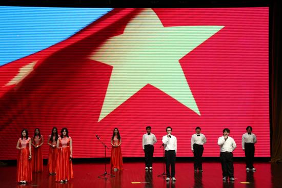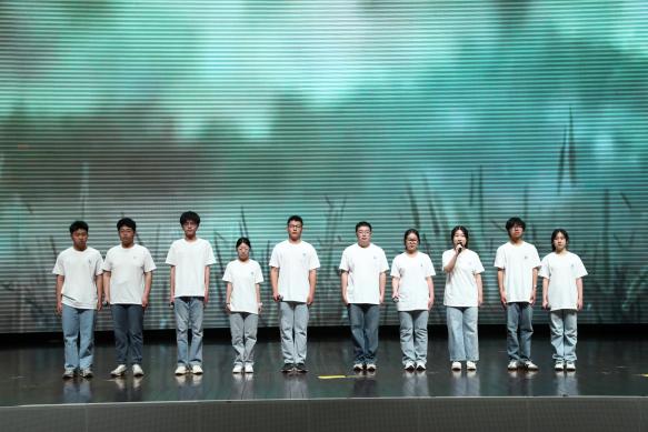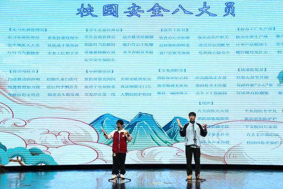 活动不仅聚焦历史与英雄,更贴近校园生活。信息工程学院的《大写的中国》以山川江河为韵脚,吟诵对祖国的赤诚;城市安全学院的《平安校园赋》将消防演练、食堂秩序等日常场景融入诗行,诠释“隐形长城”的守护;基础教育学院的快板《校园安全八大员》以轻快节奏致敬校园安全工作者,赢得阵阵掌声。此外,校团委的歌曲《理想照耀中国》、安全稳定工作处的《致敬》与《唯有热爱》,将活动推向高潮,展现理想与热爱的时代共振。